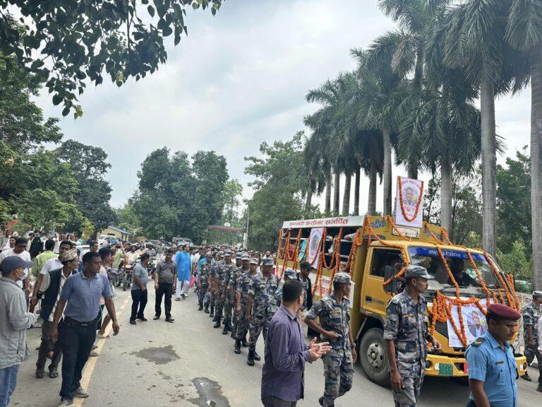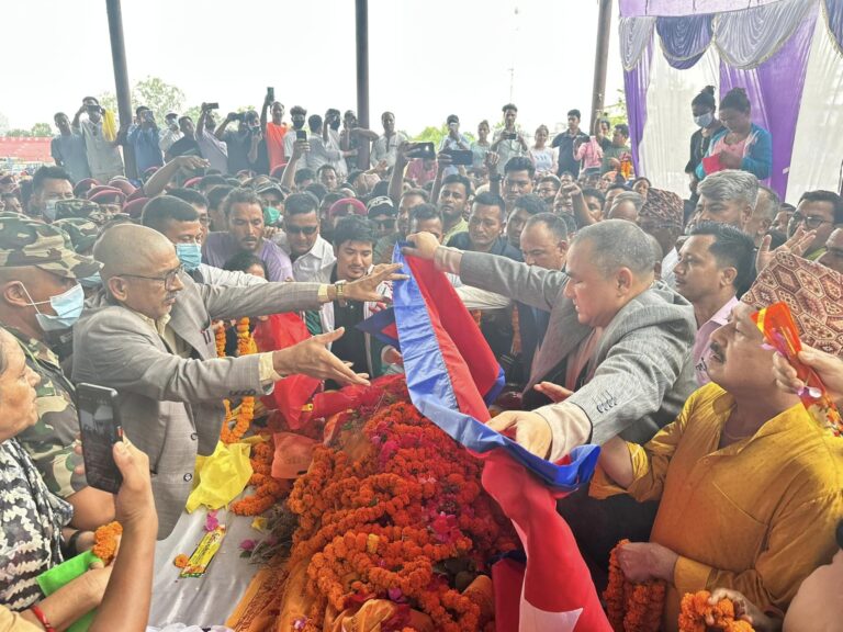 मन्त्री सिंहको पार्थिव शरीरमा राष्ट्रिय झण्डा ओढाएर श्रद्धाञ्जली