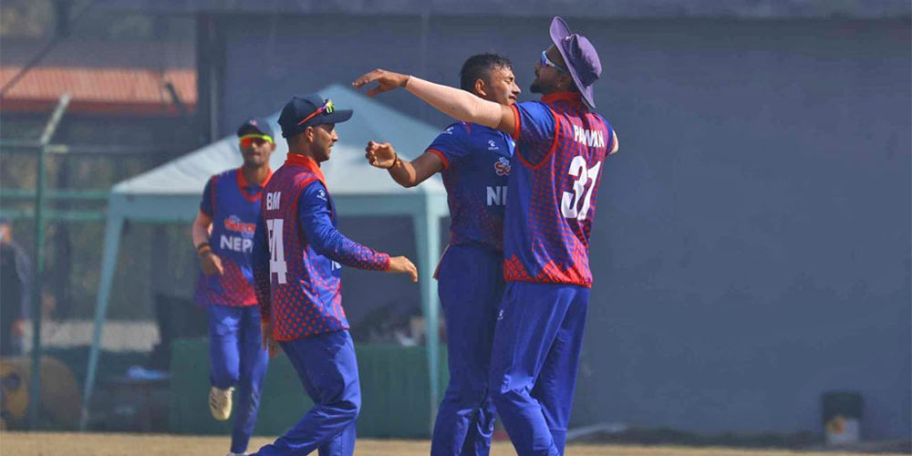 नेपालको जितका लागि कप्तान रोहित पौडेलले ८७, देव खनालले ७६, अनिलकुमार साहले ५०,भीम सार्कीले २३ र पवन सर्राफले १४ रनको योगदान गरे । त्यस्तै आसिफ सेखले १०, कुशल मल्ल र सोमपाल कामीले समान ९/९ रन जोडे ।