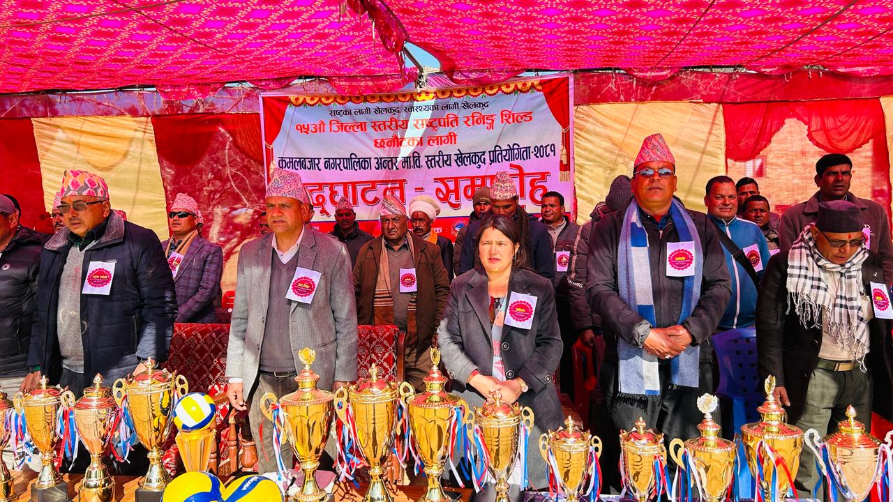 कमलबजारका विभिन्न ११ माध्यामिक विद्यालयका खेल समूहको सहभागिता रहेको प्रतियोगिताको उद्घाटन समारोहमा नगरका १० वटै वडाका वडाध्यक्षहरु, कार्यपालिका सदस्यहरु सहित नेपाली कांग्रेसका जिल्ला कार्यसमिति सदस्य खेम भण्डारी, नेकपा एमालेका जिल्ला कमिटी उपाध्यक्ष बलबहादुर कुँवर, नेकपा माओवादी केन्द्रका सुदूरपश्चिम प्रदेश कमिटी सदस्य रणबहादुर बिष्ट, नेकपा एकीकृत समाजवादीका जिल्ला कमिटी सदस्य लोकबहादुर भण्डारी, नेपाल मजदूर किसान पार्टीका बिरेन्द्र बहादुर शाही, नेकपा मालेका दिल बहादुर बिष्ट, क्रान्तिकारीका शिवराज बजगाइ र नेकपाका निर्मल सी सहित पत्रकार, समाजसेवी, नगरका कर्मचारीहरु लगायतको उपस्थिति रहेको थियो ।