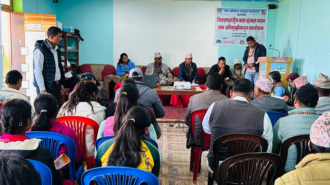 आस्था नेपालका कार्यक्रम अधिकृत तपेन्द्र ठकुल्लाले सञ्जालको संरचनागत ढाँचा प्रस्तुत गरेको भेलामा जिल्लाका दश स्थानीय तहबाट तीन/तीन जना बालबालिका सहित जनप्रतिनिधिहरु र अन्य सरोकारवालाको समेत उपस्थिति रहेको थियो ।